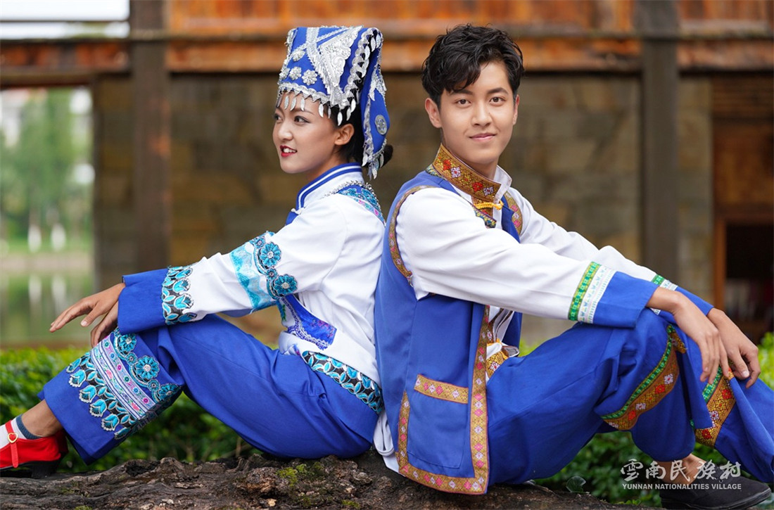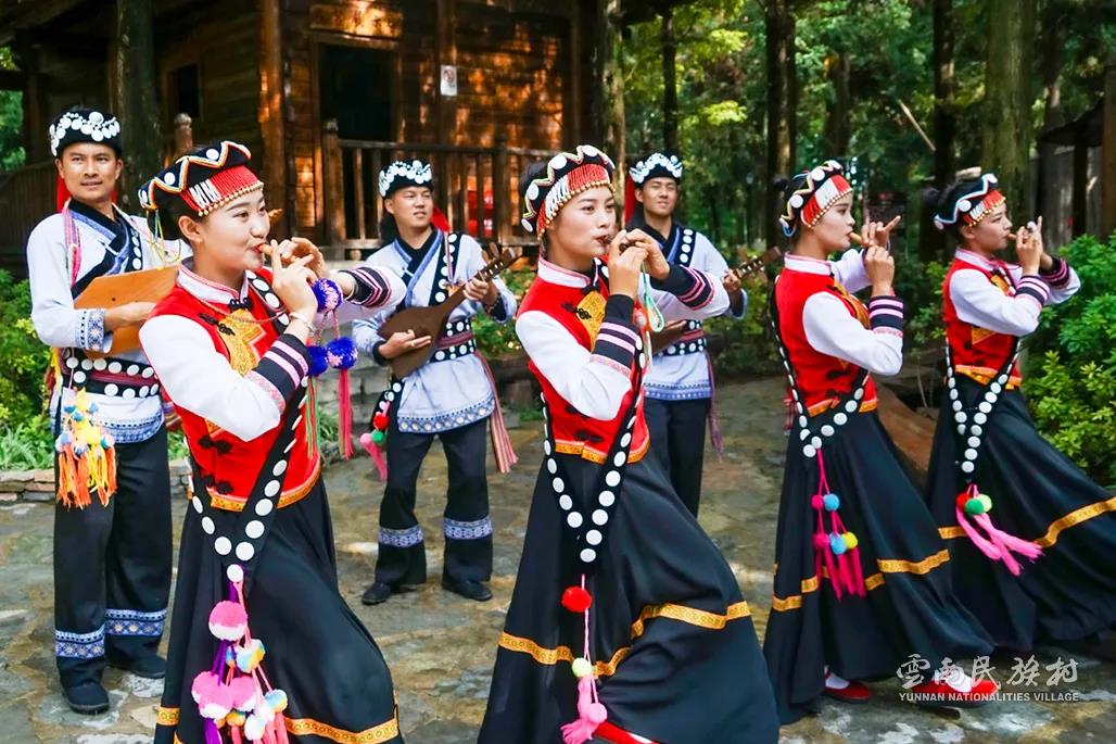 彝族在云南境內(nèi)約471萬(wàn)人,是省內(nèi)人口最多、分布最廣的少數(shù)民族,主要聚居在金沙江、元江流域和哀牢山、無(wú)量山腹地。彝族是一個(gè)能歌善舞的民族,民間打歌、跳樂(lè)之風(fēng)盛行,大三弦、跌腳舞久負(fù)盛名。火把節(jié)是彝族最具特色的民族節(jié)日。彝族村占地50余畝,三虎浮雕墻與虎頭內(nèi)祖師形象表現(xiàn)了彝族虎鷹文化。太陽(yáng)歷廣場(chǎng)圖騰柱上有太陽(yáng)、虎、火和八卦圖形象,周?chē)h(huán)繞著10個(gè)朝向不同的月球造型,外圓周有12生肖石雕。依山而建的“...